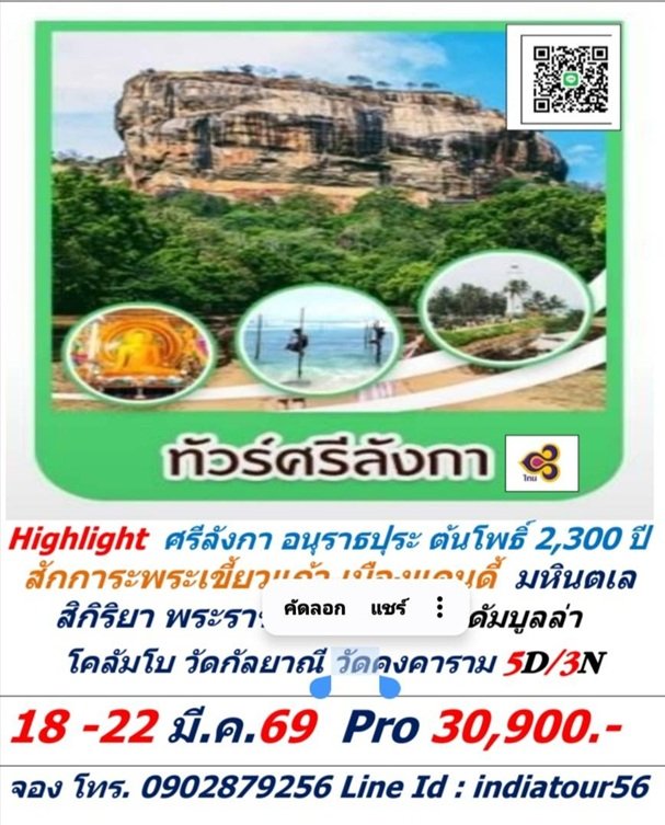 18-22 มีนาคม 69 อนุราธปุระ ต้นโพธิ 2,300 ปี สักการะพระเขี้ยวแก้ว เมืองแคนดี้ มหินตเล ถ้ำดัมบูลล่า สิริกิริยา โคลัมโบ วัดกัลยาณี วัดคงคาราม